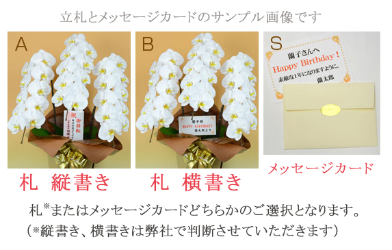 フラワーファームでは全商品メッセージカード(または立札)無料です。メッセージサンプルは