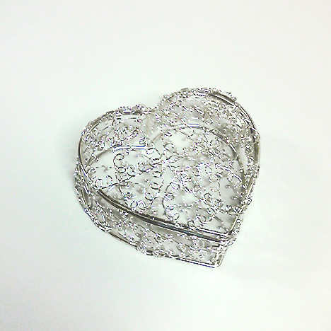 ハート型ワイヤーの器にスプレーバラを詰め込みました。