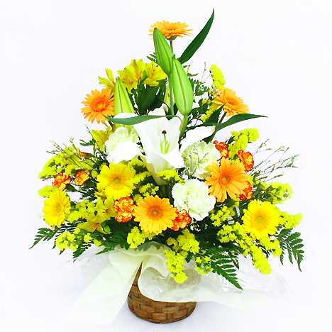 白ユリ、スプレーバラ、ガーベラ、季節の添え花等